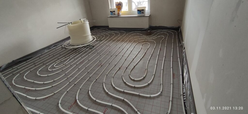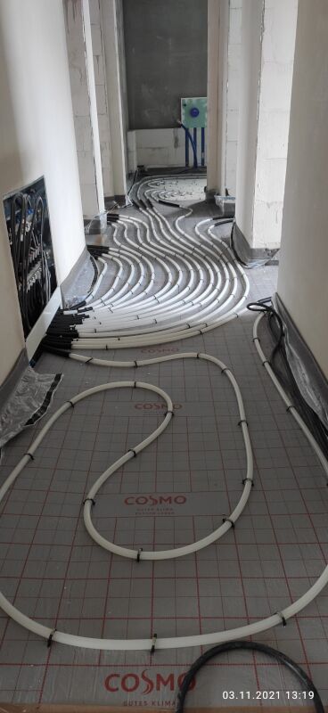 Eine Woche später wurden die Böden mit der Fussbodenheizung installiert und für den Estrich vorbereitet: