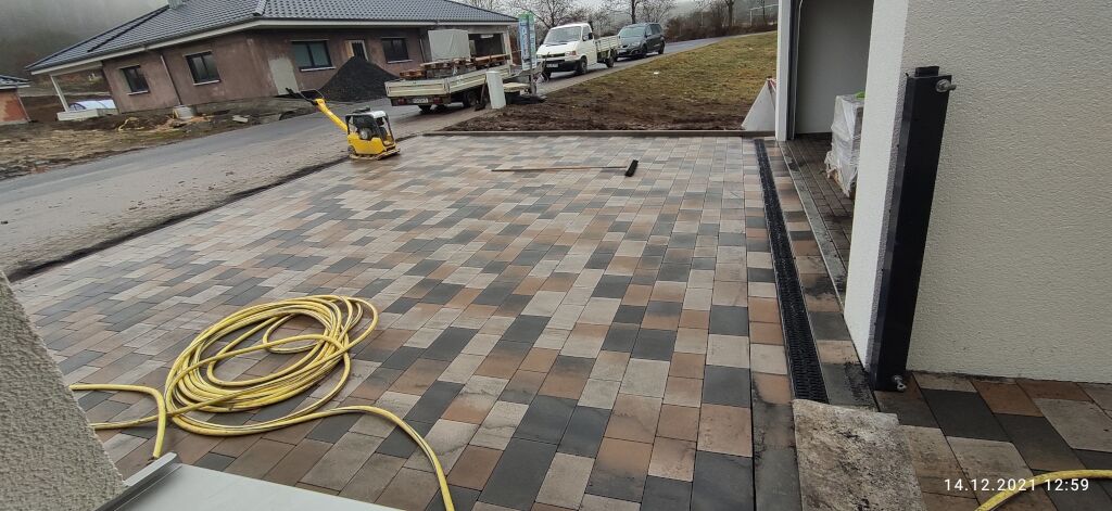 Aber die Pflasterarbeiten in der Garage, die Zufahrt und Gehwege wurden in Angriff genommen: