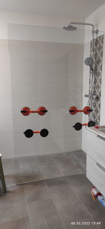 Und die Duschwände wurden ebenfalls bauseits montiert:
